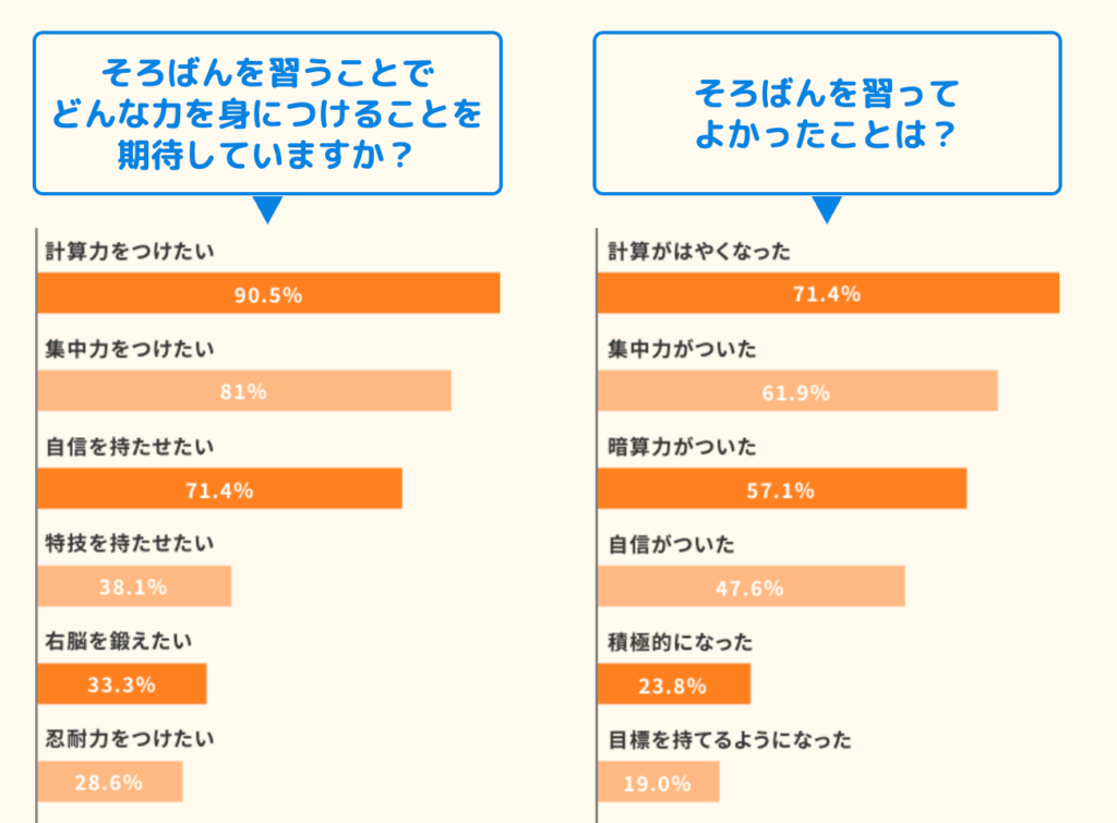 「そろばんを習ってよかったか?」との自社アンケートの回答で「はい」と答えたのは驚異の100%。