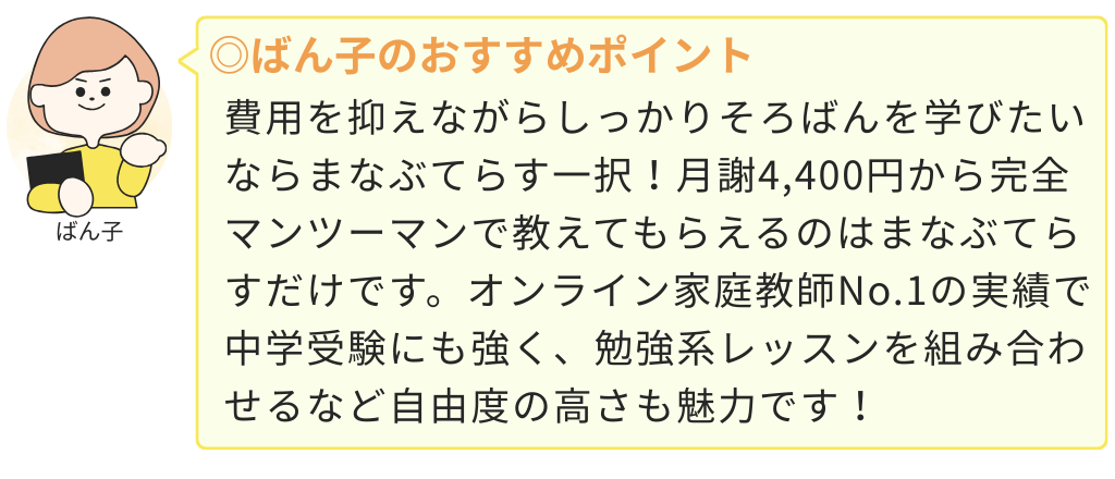 オンラインそろばんで1番お得な教室は?おすすめベスト3」は料金総額と効果などを含めて厳選した4社なので、迷ったらこの4社の中で検討すれば失敗しません。