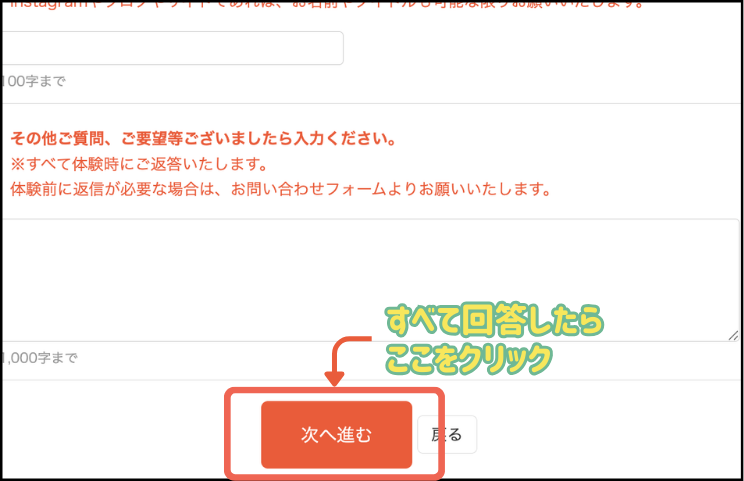 下までスクロースし、すべて記入したら『次へ進む』をクリックします。