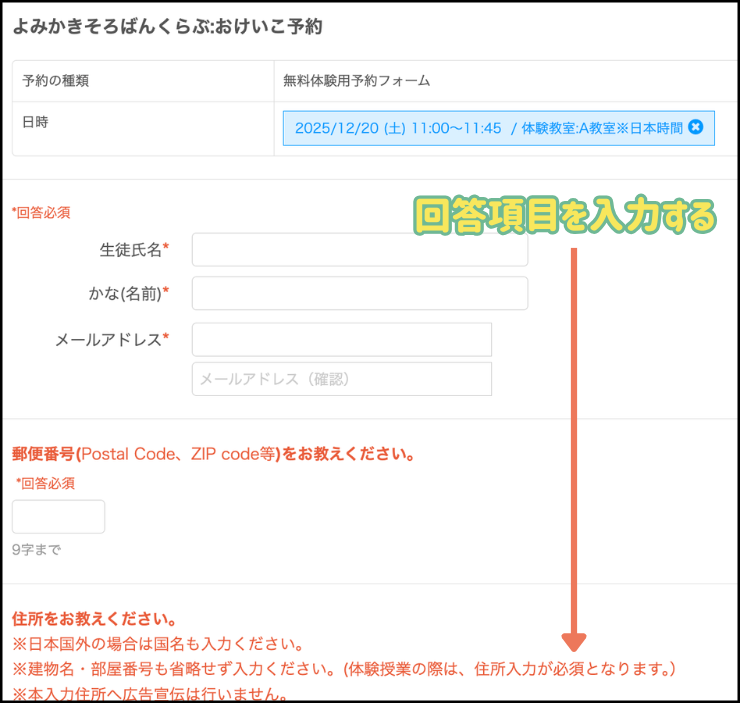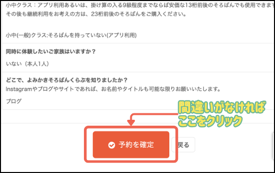 回答の確認画面で、間違いがなければ『予約を確定』をクリックして完了です。