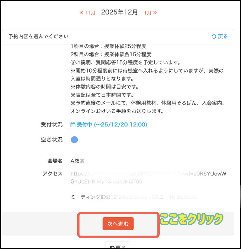 予約直後のメールにて、体験用教材、体験用そろばん、入会案内、オンラインおけいこ手順が送られてくるので必ずチェックしましょう。