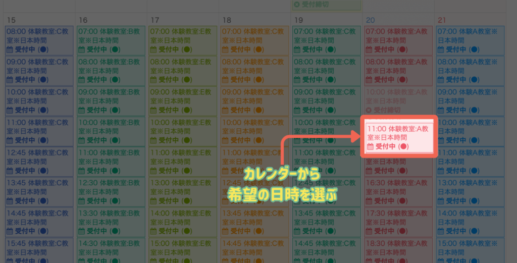 カレンダーの中から希望日時を選んでクリックします。